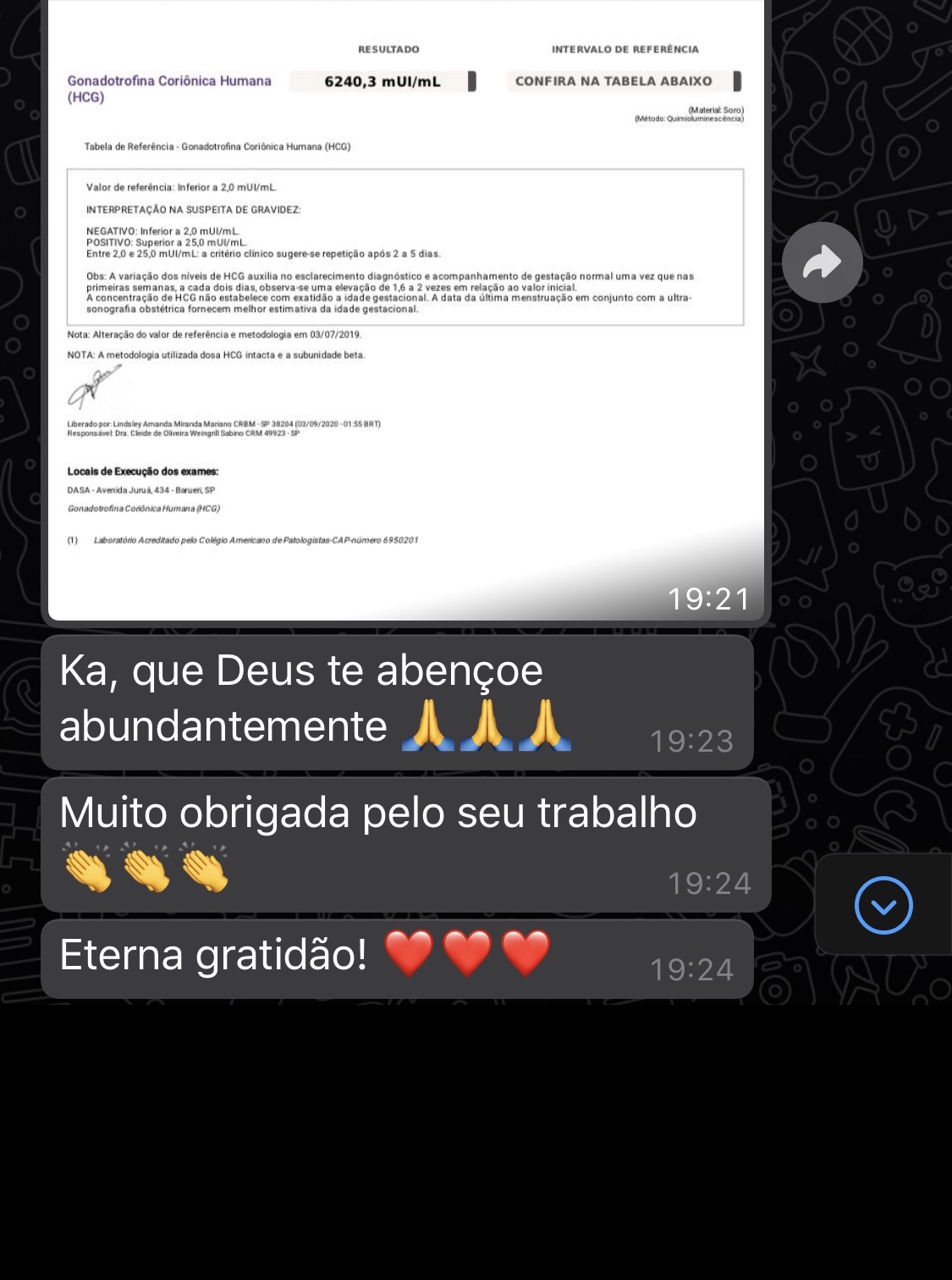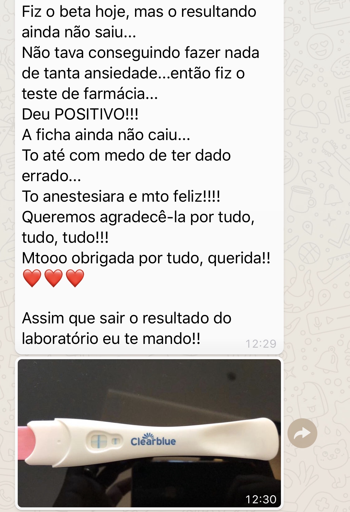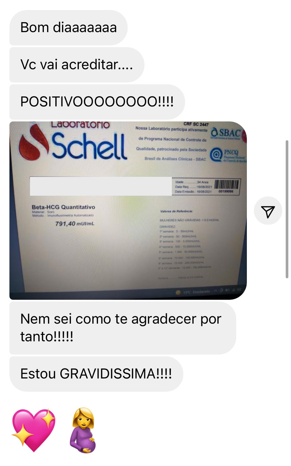 Acabar com todo o sofrimento e finalmente poder vivenciar a experiência de ser gestante e mãe.