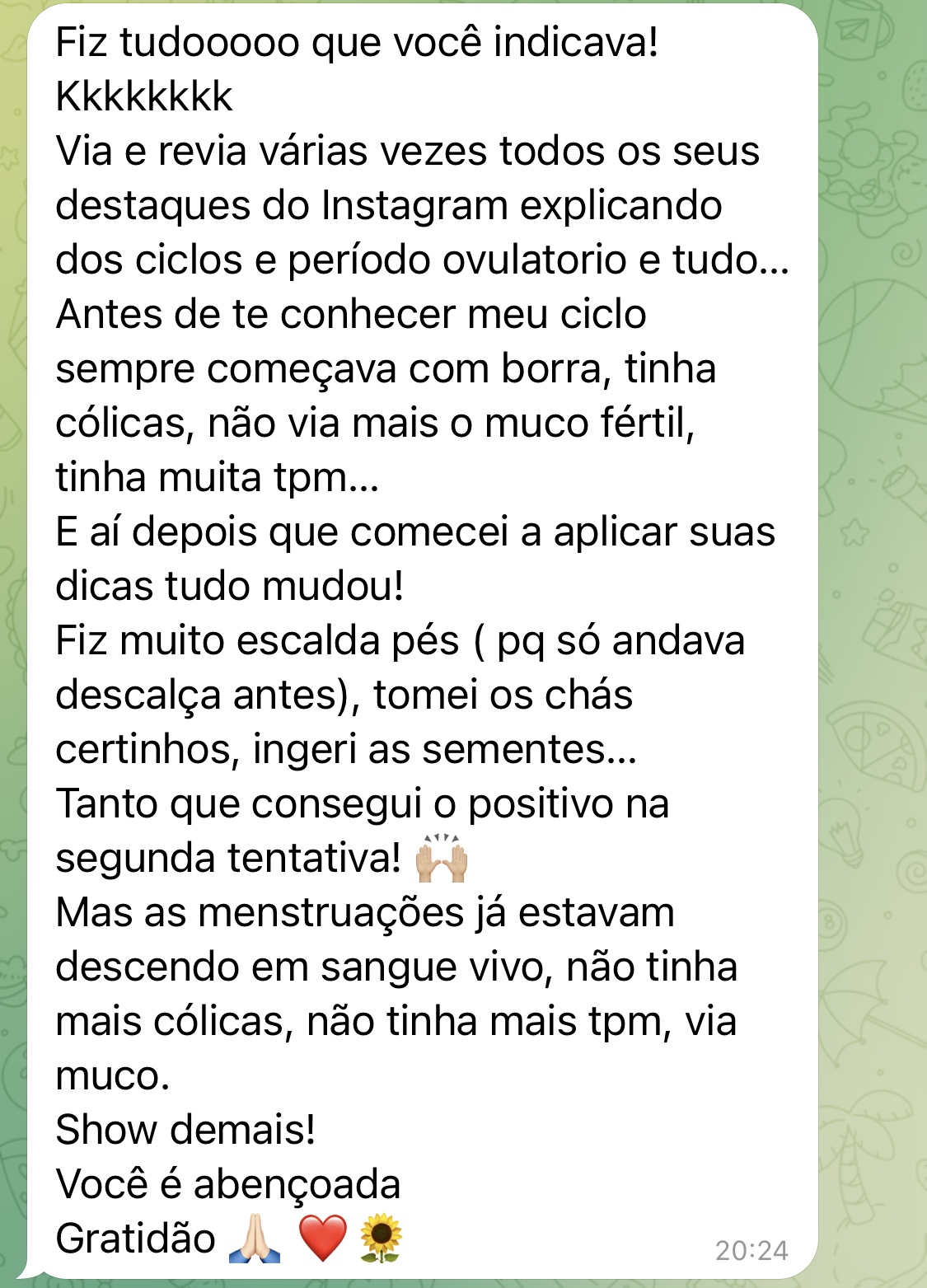 O curso não promove a cura, mas ajuda a evitar que o seu diagnóstico interfira na sua fertilidade, ou seja, mesmo que receba esses diagnósticos, com o curso você aumenta em 3x mais a chance do seu positivo.