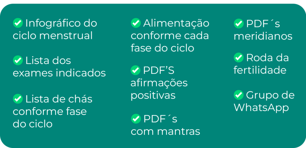 No curso você saber identificá-los e como incluir facilmente na sua rotina hábitos que atuam exclusivamente na sua fertilidade.